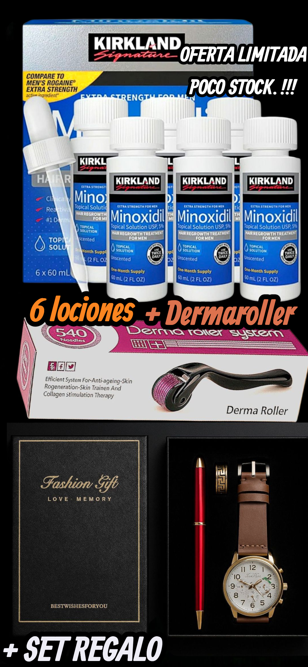 PROMOCIÓN SEPTIEMBRE CAJA 6UNIDADES + DERMAROLLER + SET ESTUCHE DE RAGALO (RELOJ + LAPICERA + ANILLO)